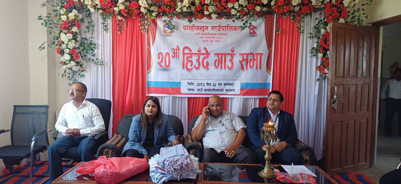 परासी, २४ चैत । पश्चिम नवलपरासीको पाल्हीनन्दन गाउँपालिकाको २० औं हिउँदे गाउँसभा सम्पन्न भएको छ । गाउँपालिका अध्यक्ष बैजु प्रसाद गुप्ताको अध्यक्षतामा उक्त गाउँसभा विभिन्न ऐन, कार्यविधि पारित गर्दै साेमबार सम्पन्न भएको हो । गाउँसभामा योजनाहरु कार्यान्वयनको क्रममा देखिएको समस्याहरु सामाधान गर्न र केहि योजनाहरु संचालन गर्दा आवश्यक कार्यविधिहरु पारित गरिएको हो । गाउँसभामा अध्यक्ष बैजु प्रसाद गुप्ताले पालिका भित्र योजनाहरु संचालन गर्दा देखिएको समस्याहरु माथि छलफल गर्दै सो सामाधानको बाटो खोजिएको जिकिर गर्नु भयो । केहि योजना संचालनका लागि कार्यविधिहरु आवश्यक रहेको हुँदा सो कार्यविधिहरु पास गरिदै पालिकाको कार्यप्रगति प्रति चर्चा गरिदै पालिकाको लक्ष्य अनुसार काम समयमै सक्न कर्मचारीहरुलाई अध्यक्षले निर्देशन समेत दिनु भयो ।